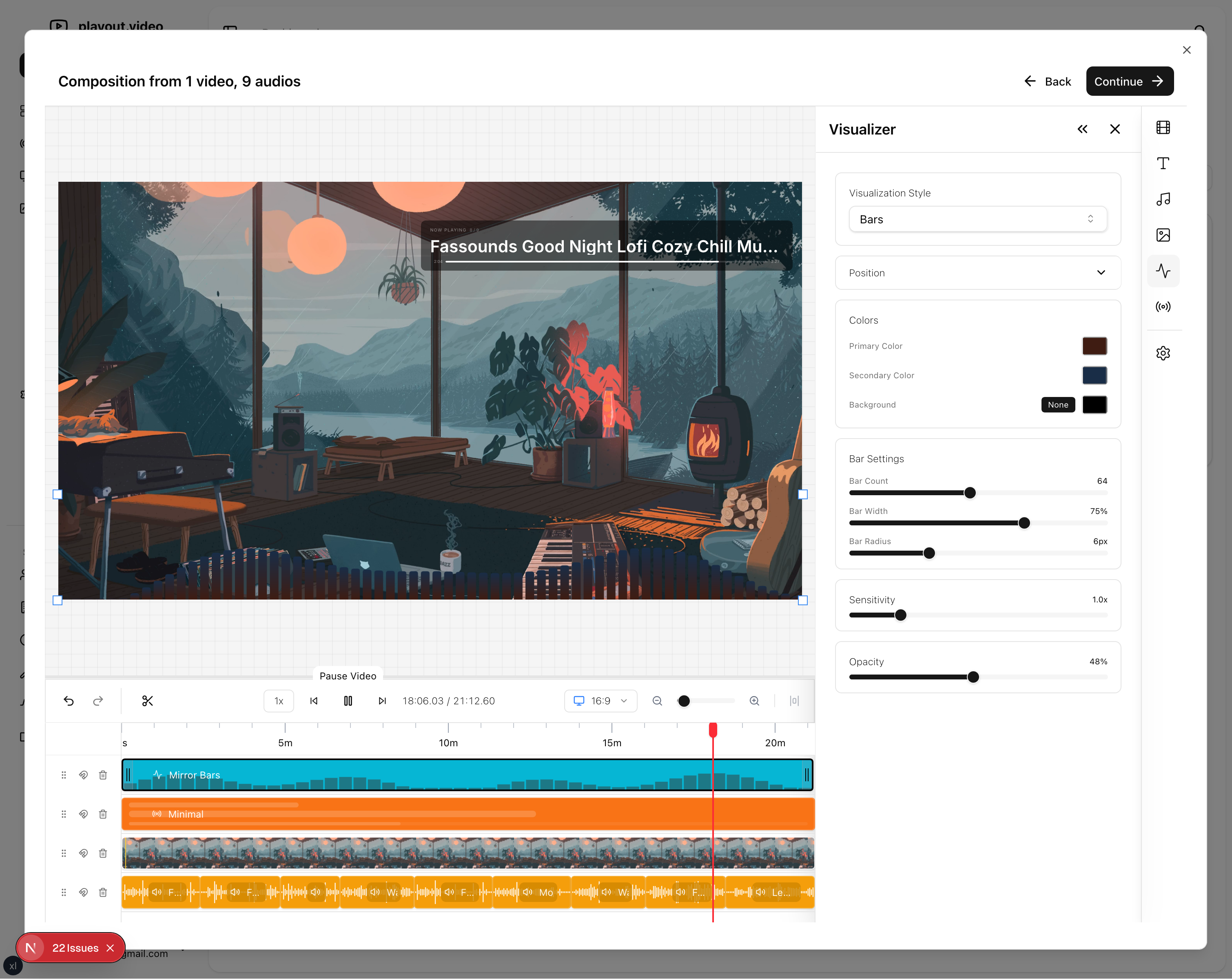 Click Continue — since you're mixing audio files with a visual, the Composition Editor opens automatically