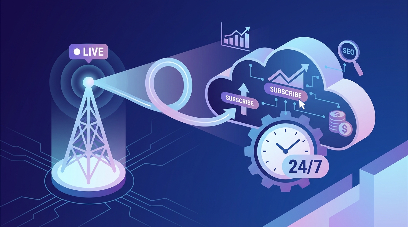A comprehensive guide to using 24/7 live streaming as a growth engine for your YouTube channel. Strategies for watch hours, subscribers, SEO, and monetization.